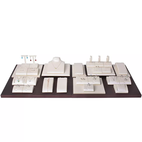 PU 가죽 호화스러운 카운터 반지 대 목걸이 보석 전시 고정되는 전시 버팀대 windows 보석 전시 진열장